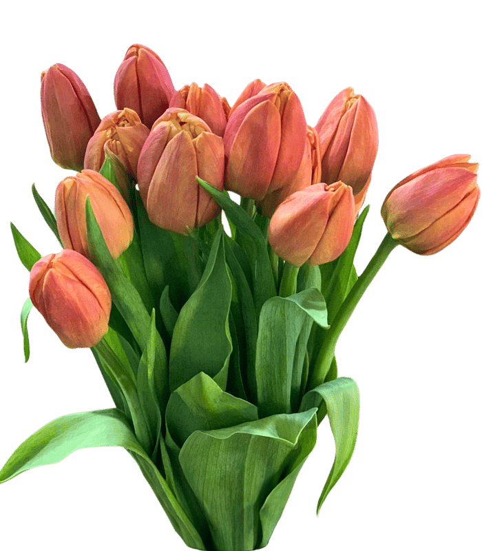 A bunch of 20 orange Tulips imported from Holland, without any decorations or wrapping.