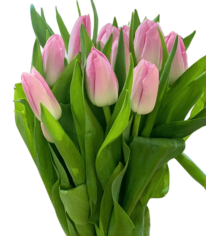A bunch of 20 pink Tulips imported from Holland, without any decorations or wrapping.