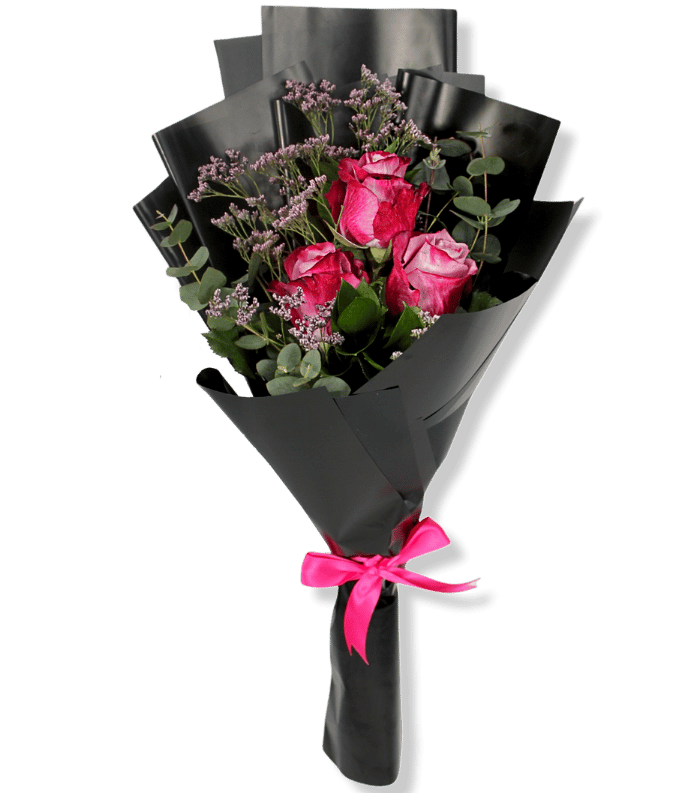 3 Purple roses with the best quality from Kenya arranged with imported greenery and fillers in a very unique hand bouquet to draw a smile on your loved one’s face, suitable for every occasion with the best online flowers delivery service in Egypt.