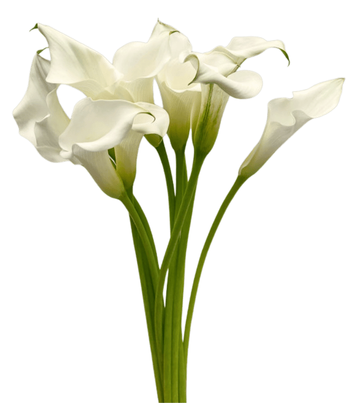 An elegant arrangement of 10 white Calla Lilies imported from Holland without any decorations or wrapping