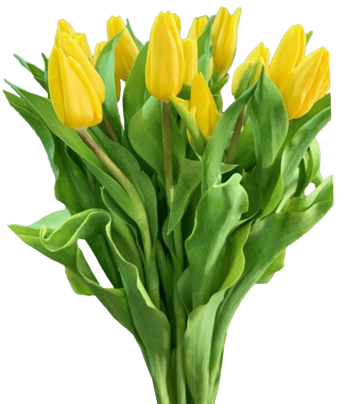 A bunch of 20 yellow Tulips imported from Holland, without any decorations or wrapping.